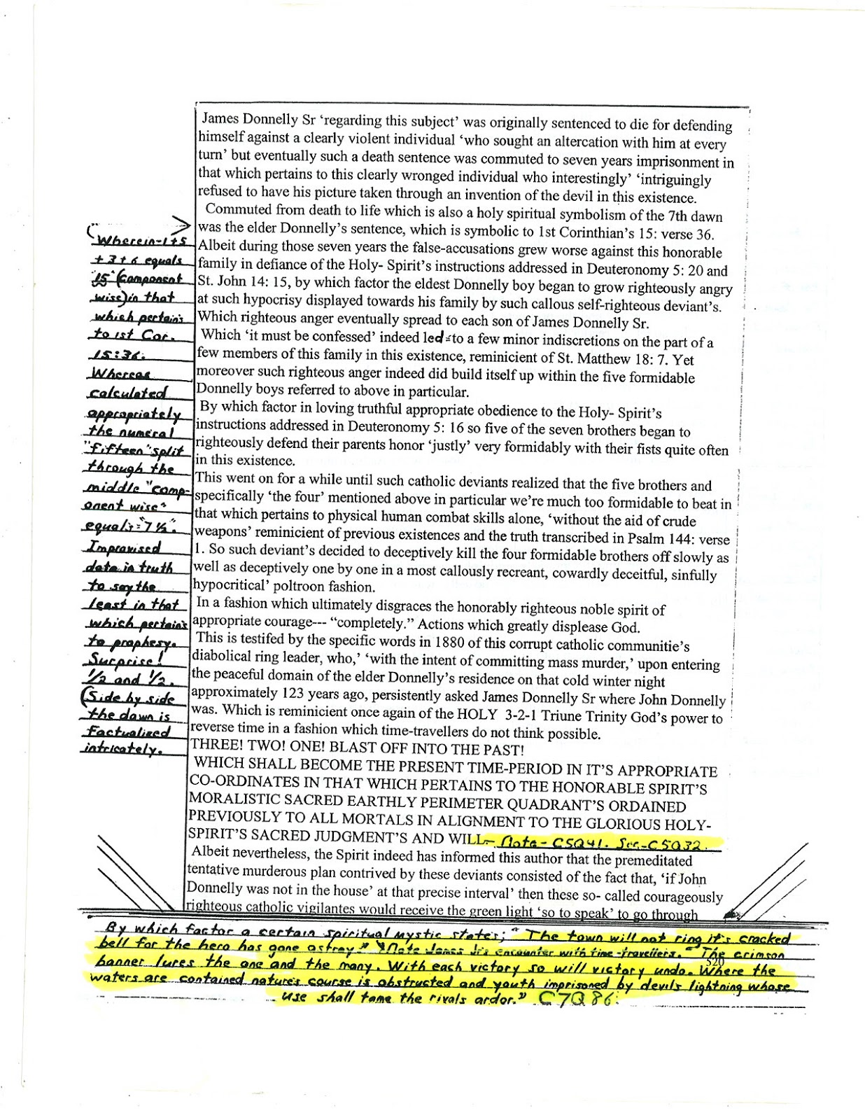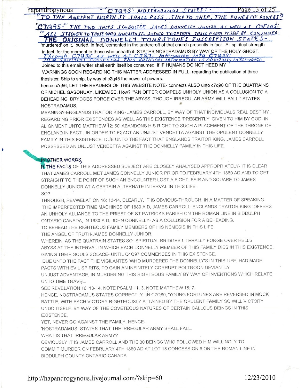I ALSO FULFILL PART OF C5Q96 OF NOSTRADAMUS'S WORDS TO HUMANITY IN THIS LIFE. YET JAMES DONNELLY JUNIOR FULFILLS THE MAJORITY OF C5Q96.